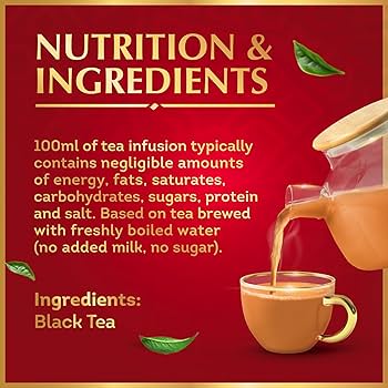 Brooke Bond Red Label tea is a popular black tea known for its strong, rich flavor and is often enjoyed with milk. It is a caffeinated tea and is available in both loose leaf and tea bag formats. The tea is a blend of high-quality tea leaves and is designed to be versatile, suitable for making both black tea and masala chai.