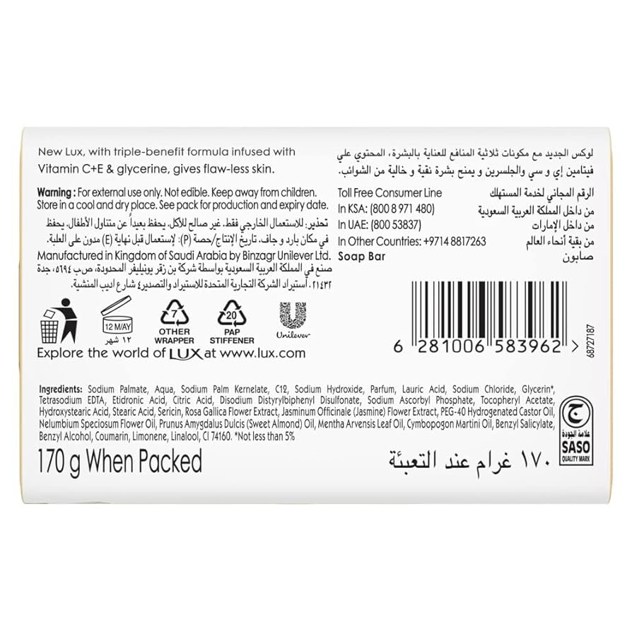 Lux soap is a beauty soap known for its fragrant and moisturizing properties, offering a luxurious bathing experience. It aims to leave skin feeling soft, smooth, and delicately scented, often with a range of floral or fruity fragrances crafted by perfumers.
